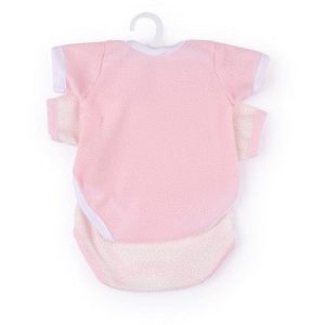 Set of two bodysuits: one white bodysuit with pink polka dots and pink edges, one pink bodysuit with white polka dots and edges. Includes 2 baby onesies Hand wash. For 40cm dolls / My FAO Dolls