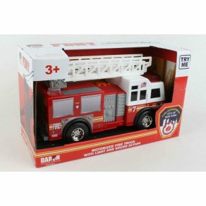 This FDNY motorized ladder truck has lights and sound action. Just press the buttons and the truck races across the floor with siren/lights. Requires 3 AA batteries (included). Mute switch for quiet play. Item is approximately 11 inches long, 4 inches wide and 6 inches tall. Working ladder. Ages 3+