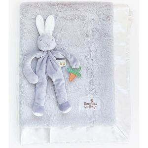 Wrap a little one in love with the Somebunny Loves You Gift Set, a heartwarming collection designed for cuddles, comfort, and endless joy. This delightful set includes: Bun Bun Bye Bye Buddy 11" length satin lining 100% Polyester Machine wash & dry low heat Glad Dreams Blanket 29×32 inches 100% Polyester Machine wa