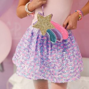 We've added a dazzling new Purple Party Sequins Skirt to our collection! This eye-catching skirt features a vibrant combination of purple, pink, and blue sequins, creating a mesmerizing display of colours. The rich lilac satin waistband adds a touch of elegance and ensures a comfortable fit. Let your kiddos twirl &