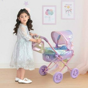 Bring your little one's dolls with them on-the-go with the Olivia's Little World by Teamson Kids Magical Dreamland 2-in-1 Deluxe Doll Stroller. This fun and functional, multipurpose stroller/carrier is designed for use with dolls up to 16", while the colorful iridescent design makes play time more stylish. This 2-in-1