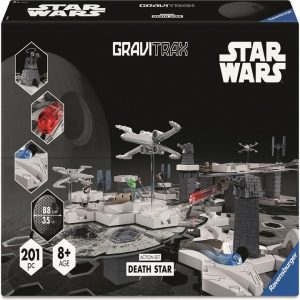 Action-packed space duels are brought to life with the GraviTrax Star Wars Deathstar action set. It allows you to discover the legendary encounter between the Empire and the Rebels from Star Wars. With elements and components from GraviTrax in the exclusive Star Wars design, you can create your own exciting GraviTrax t