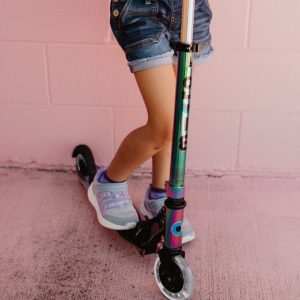 Go anywhere on the Micro Sprite! Our lightest 2-wheeled Micro scooter for ages 6 to teen, the Sprite weighs just 5.9 lbs and folds for easy portability. It’s our highest rated 2-wheel Micro scooter for a reason! This upgraded Sprite features motion-activated light-up LED wheels on the front and back. Perfect for school