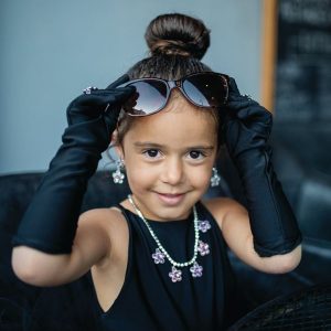 Sweet meets sophistication in The Audrey 5-piece jewellery set. This elegant boxed set includes two rings, a pair of clip-on earrings, and a matching necklace, all accented by floral-shaped charms and studded with soft pink, diamond, and lilac coloured gems.