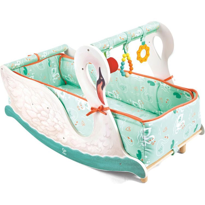 Experience the perfect blend of playtime and soothing comfort with our 2-in-1 Baby Gym and Rocking Swan Chair. Delightful entertainment meets relaxation for your child. EXCITING HANGING TOYS: There are three hanging toys in the baby gym to help with gross motor skill development like arm strength, as well as colour and