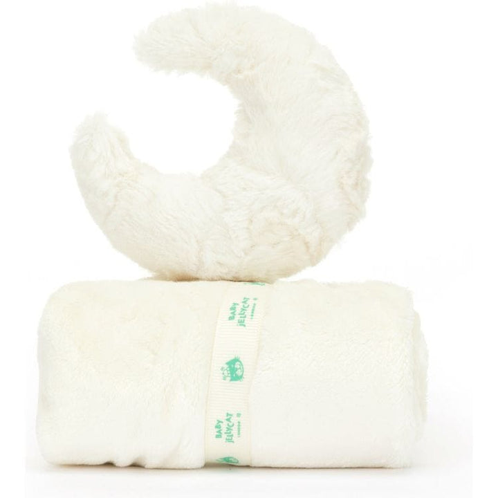 Amuseable Moon Soother offers the perfect comfort at sleep times. With a soother and matching moon in soft and textured white fur created from recycled fibres, little ones can cuddle up with the blanket or the tiny Amuseable Moon on the corner for the most joyful of dreams. Tested to and passes the European Safety Stan
