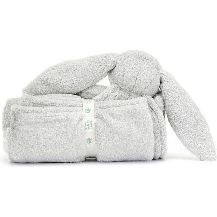 The Bashful Silver Bunny Blankie combines our most loved Bashful Bunny character’s long lop ears, pink suedette nose, embroidery eyes and soft squashy paws with a blankie made from the same cloud soft, silver-grey coloured fur in recycled fibres. Neatly rolled and tied with a Baby Jellycat grosgrain ribbon, this is an