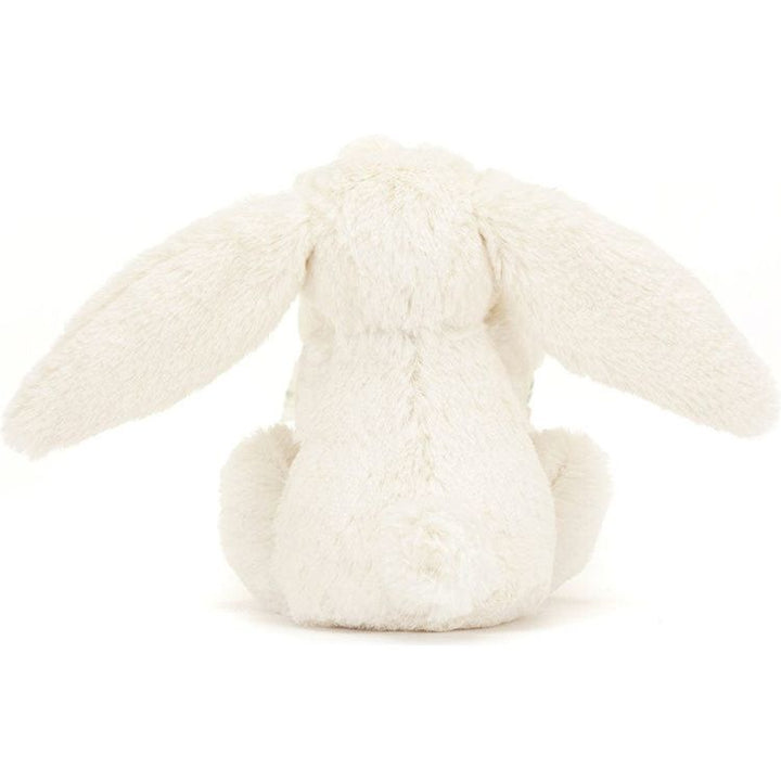 A perfect gift for newborns, the Bashful Bunny Soother is our most loved Bashful Bunny in a soft fur, with long lopped ears, a pink suedette nose and stitched eye detail holding a square shaped soother, un-stuffed and irresistibly soft to touch. Made from recycled fibers and neatly rolled up and presented with a Baby J