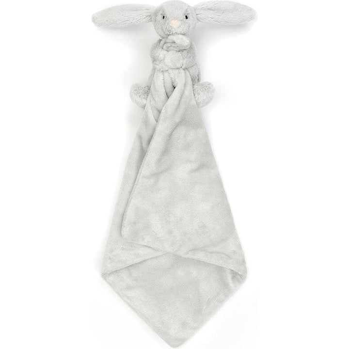 A perfect gift for newborns, the Bashful Bunny Soother is our most loved Bashful Bunny in a soft fur, with long lopped ears, a pink suedette nose and stitched eye detail holding a square shaped soother, un-stuffed and irresistibly soft to touch. Made from recycled fibers and neatly rolled up and presented with a Baby J