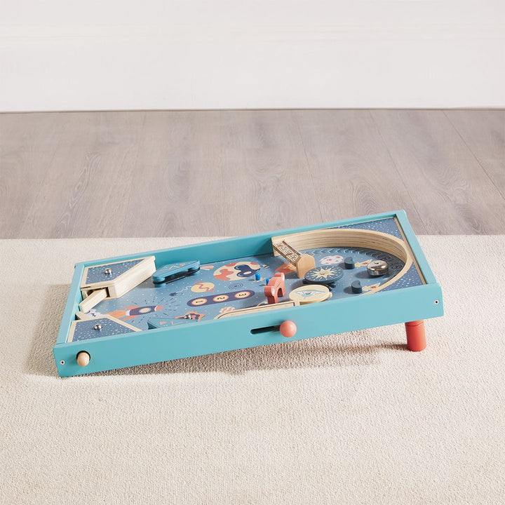 Get your competition on with our Blast Off Pinball Game. Play on any table, or on the floor, our Blast Off Pinball is a perfect gaming experience. Comes with 3 metal balls and adjustable feet. Pull back the launcher and work the flippers to hit the bells, scoring tiles, whirly circles, and lots of other challenging f