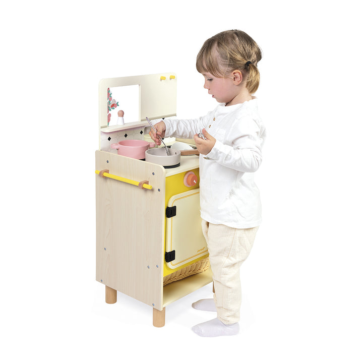 On the menu today: grilled seasonal vegetables and homemade cake! With their wooden kitchen, children from the age of 3 can imagine crazy recipes at the stove and imitate the grown-ups. Equipped like the real thing and with 11 accessories, this toy kitchen is perfect for playing dinette and inventing all kinds of stori