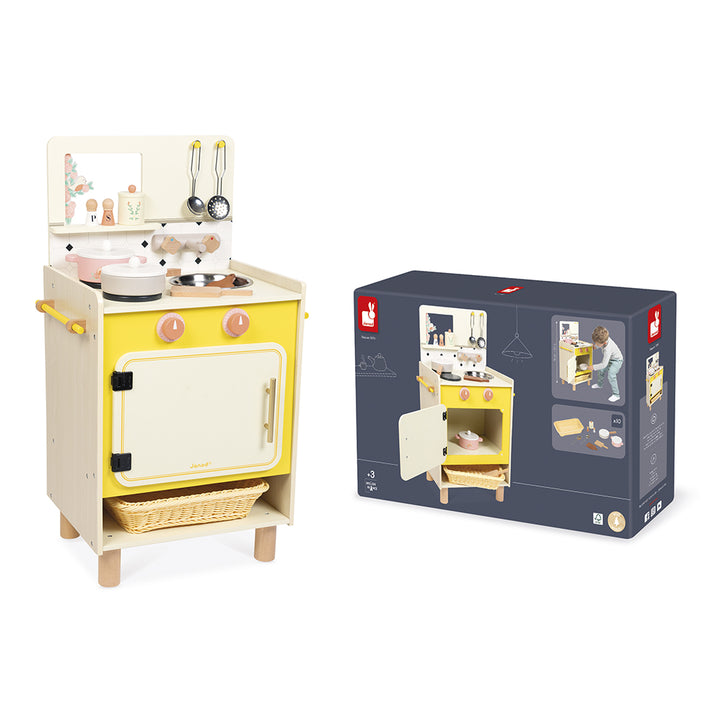 On the menu today: grilled seasonal vegetables and homemade cake! With their wooden kitchen, children from the age of 3 can imagine crazy recipes at the stove and imitate the grown-ups. Equipped like the real thing and with 11 accessories, this toy kitchen is perfect for playing dinette and inventing all kinds of stori