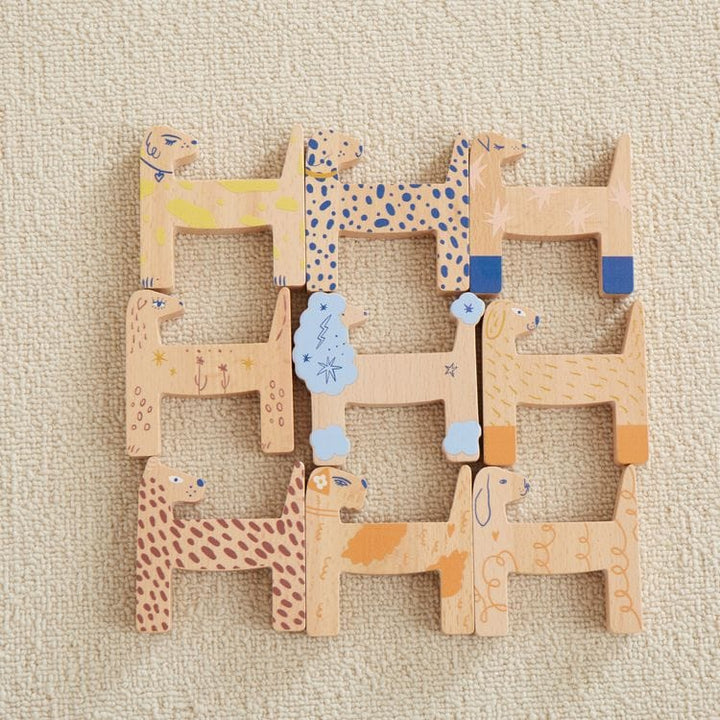 Help your kids get a sense of balance with our Dog Gone Balancing Game.  Comes complete with 9 dogs, 5 bones and a rocking base that makes this a fun and challenging game for the kiddos.  Water based, non-toxic painted patterns on each dog.  Solid beechwood.  Get yours today, DOG GONE IT! Ages 18 Months + Material: Bee