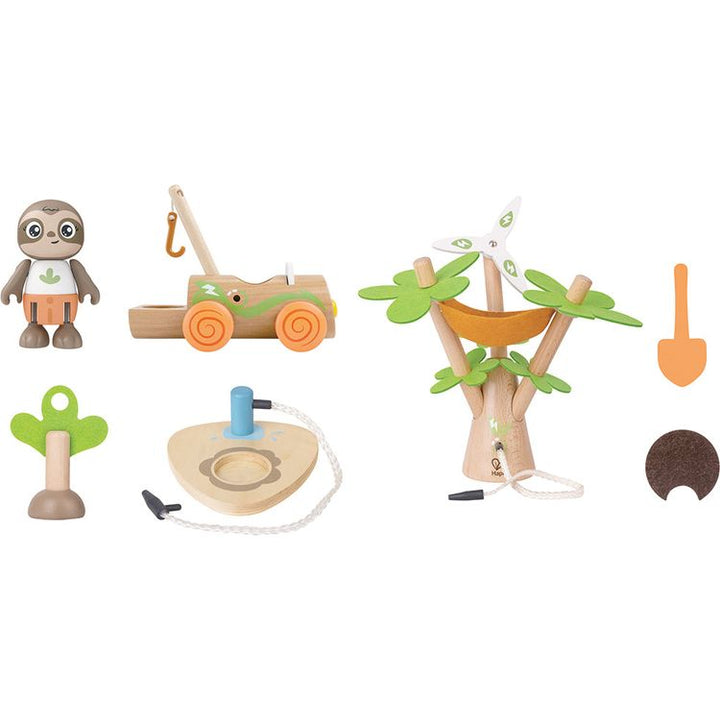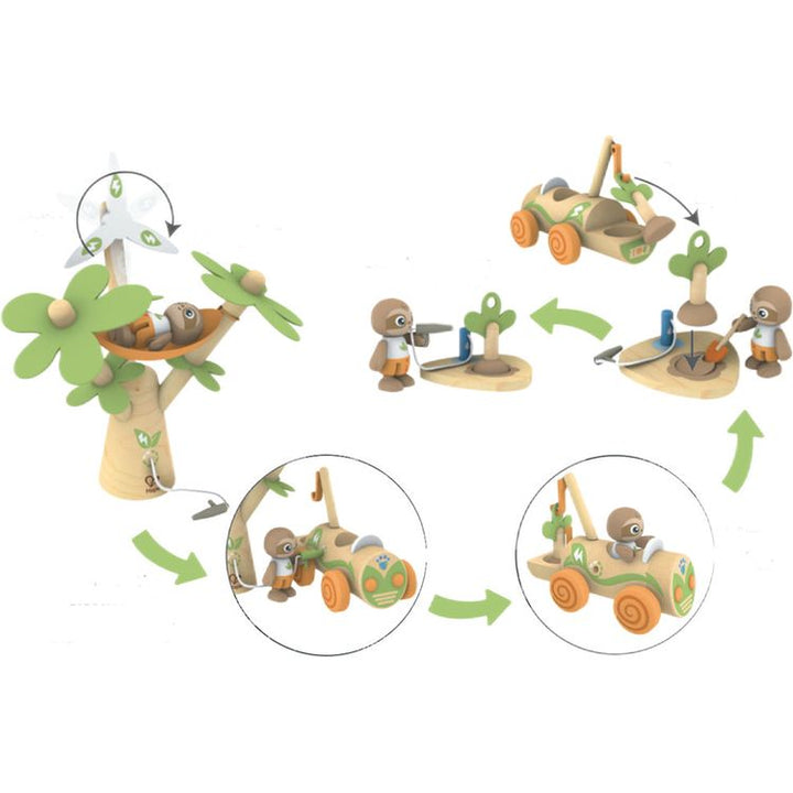 What better way to help your child learn the importance of the environment than with an adorable role-playing toy that encourages sustainability! Watch your kid’s imagination take off as they make believe with the baby sloth driver, “electric” car, wind turbine and tree-planting kit in this awesome play set. The tall t