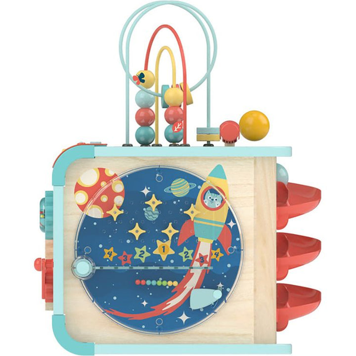 Spend hours exploring, playing and learning with this wonderful activity cube! With five music modes to go with the five themes, the cube also features turning gears and cogs, a pinball game, bead maze, shape matching, ball run tracks and more! The activities will even keep your little ones engaged and amused as they g