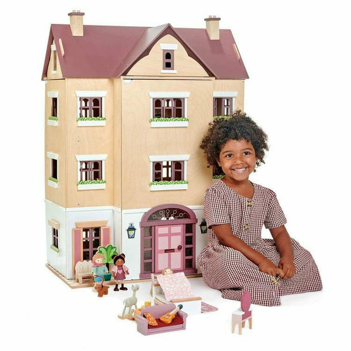 Fantail Hall is a really impressive beautiful wood Dolls house based on a traditional British style of architecture. It has 4 levels of play area as the roof can be removed to reveal an attic space. This grand dolls house is an original and novel design that allows the child to grow and add to the house as their storyt