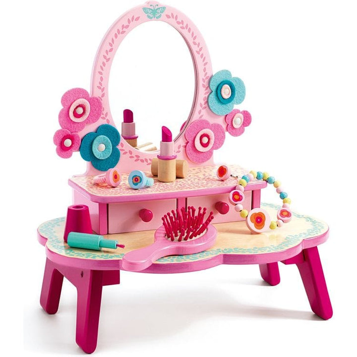 Includes a hairbrush, water-based nail polish, pink lipstick, 2 hair elastics, a multi-color bracelet, and a ring, all in beautiful shades of pink. Helps develop imagination, role-playing, storytelling, and a sense of make-believe Made from the highest quality materials, completely non-toxic; meets and exceeds all US a