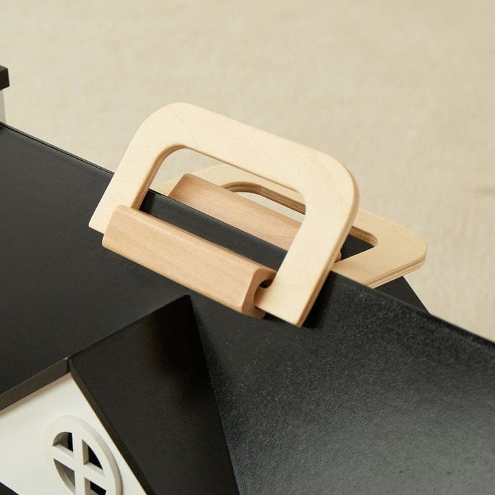 There’s no place like home–Home Sweet Home Dollhouse, that is!  Our carry along dollhouse opens it’s doors to a ton of imaginary play!  Comes with bathroom (tub, toilet, sink), bedroom (bed, nightstand, plant) living room (sofa, end tables with drawers that open, tv and 2 lamps) and kitchen (fridge, oven and sink), plu