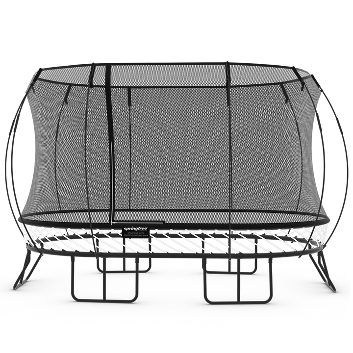 For kids of all ages with narrow yards. The large oval model is perfect for large families and kids of all ages, who love fitnessand activities, without taking up the whole backyard. This Large Oval Trampoline provides 92 squarefeet of jumping freedom. Max Weight Capacity: 1500lbs Single Jumper Weight Capacity: 220lbs