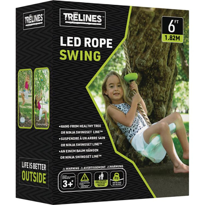 SUPER POPULAR LED CLIMBING ROPE AND SWING BASE COMBO! LED lights enable fun, colorful play both daytime and nighttime. The 25 multicolored LEDs change to 3 colors (red, blue and green) with an automatic timer shut off. The sturdy solid base assists kids in climbing up the rope more easily, compared to a smaller climbin