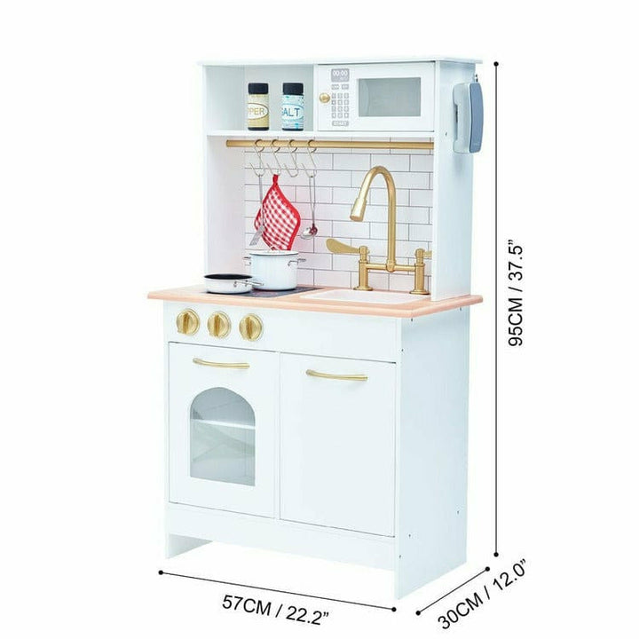 Give your little one their own cooking space with the Teamson Kids Little Chef Boston Classic Kids Kitchen Playset. This white retro-style play kitchen features a natural wood countertop, white subway tile backsplash and gold hardware, making it great for both boys and girls, and completes any classroom or playroom. Wi