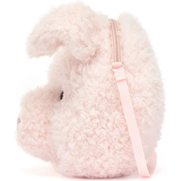 Trotting out somewhere? Grab the Little Pig Bag! This peachy piglet has tousled fur, a suedette snout and the cutest fold ears. With a strong webbed strap, silver zipper and soft cotton lining, this quirky bag is good for travels and truffles! Tested to and passes the European Safety Standard for toys: EN71 parts 1, 2