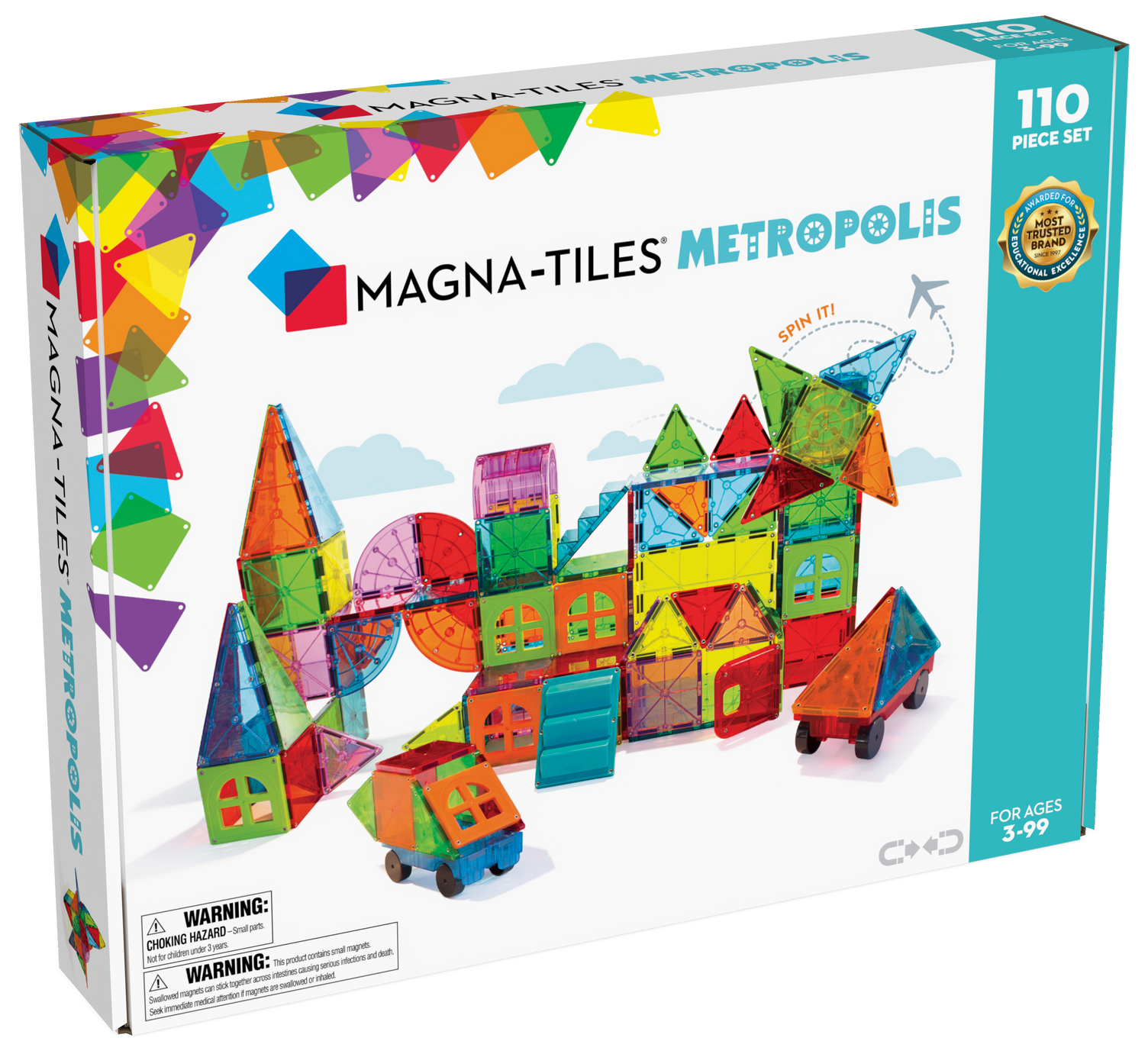 The secret is out: Anything kids can dream. they can create with the MAGNA-TILES® Metropolis 110-Piece Set! Sure to spark hours of meaningful play. this set is not only our largest yet… it also includes vivid colors and unique pieces. allowing children to build anything from a high-rise city skyline to a bustling colony in outer space. Designed for kids ages 3+. this set checks all the boxes that make learning fun. encouraging the understanding of: basic geometric concepts. color theory. STEAM skills. teamwork. problem-solving. and more. It’s why MAGNA-TILES® sets are go-to choice for playrooms and classrooms across the world!