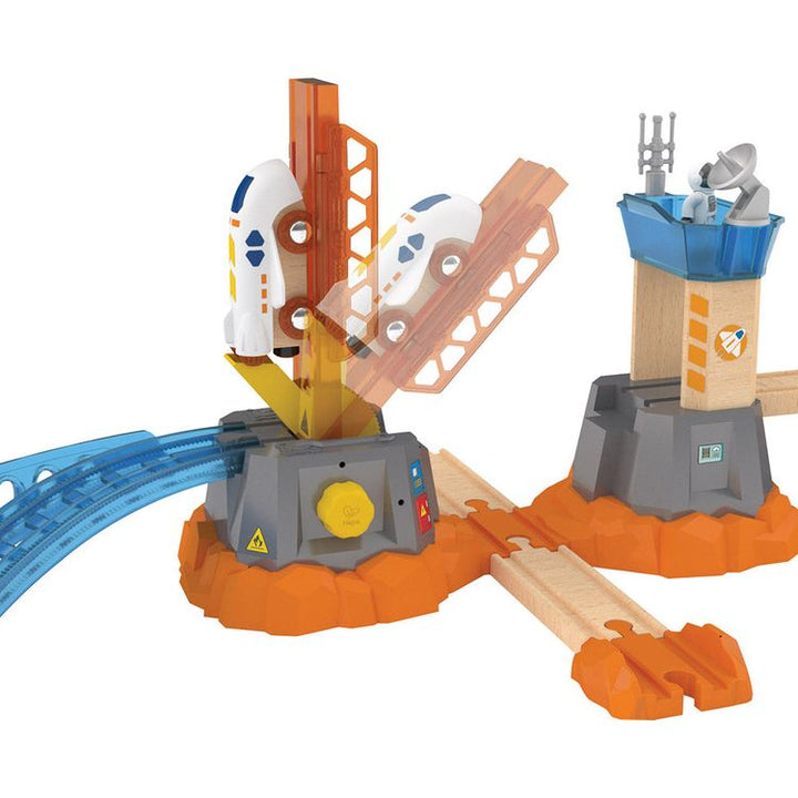 Ground control this is the Mars Launcher speaking! Inspire your mini astronaut as they propel the space train to Mars and explore the red planet with the rover and satellite vehicle. Glow-in-the-dark elements and interactive components enhance imaginative play making it perfect for sparking creativity and cognitive dev