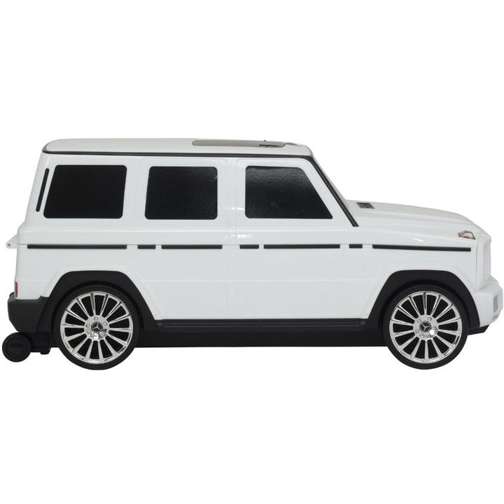 Officially licensed two-in-one Mercedes Benz G-class suitcase that can be used as both a suitcase and a ride-on push car. The large storage space is located in the car-look trunk and is reached by tapping the front car logo for storing carry-on luggage. By unlocking the top handle, it is simple to transform into a ride