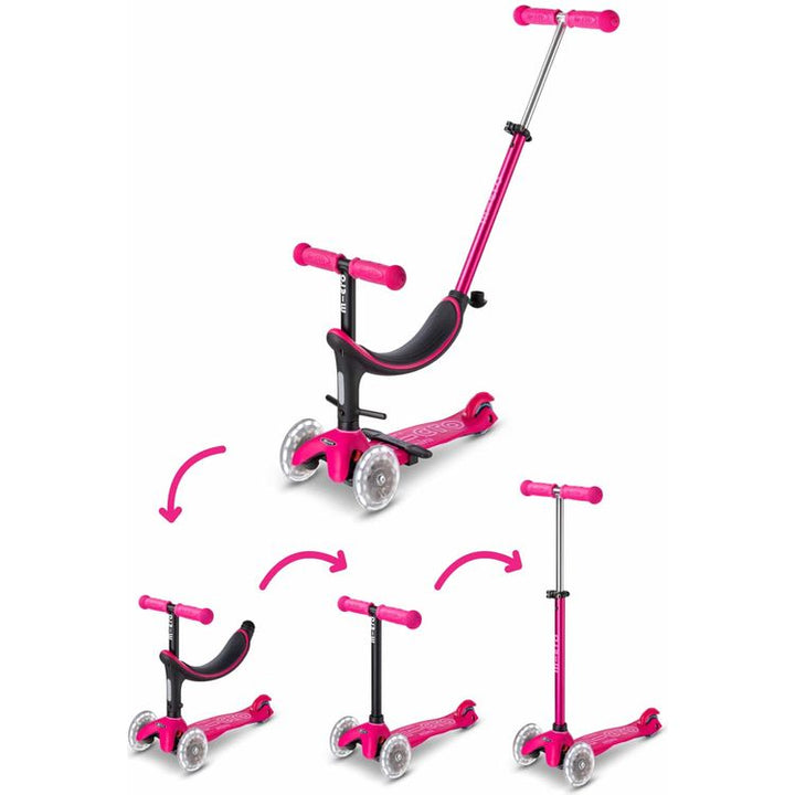 An innovation in toddler mobility. A multi-adaptable ride-on, trike, toddler scooter, and big-kid scooter. Perfectly attuned to suit each stage of your child’s development. One product to last your child from their first steps to their first year at school. The Micro Mini2Grow LED Scooter is the perfect companion for
