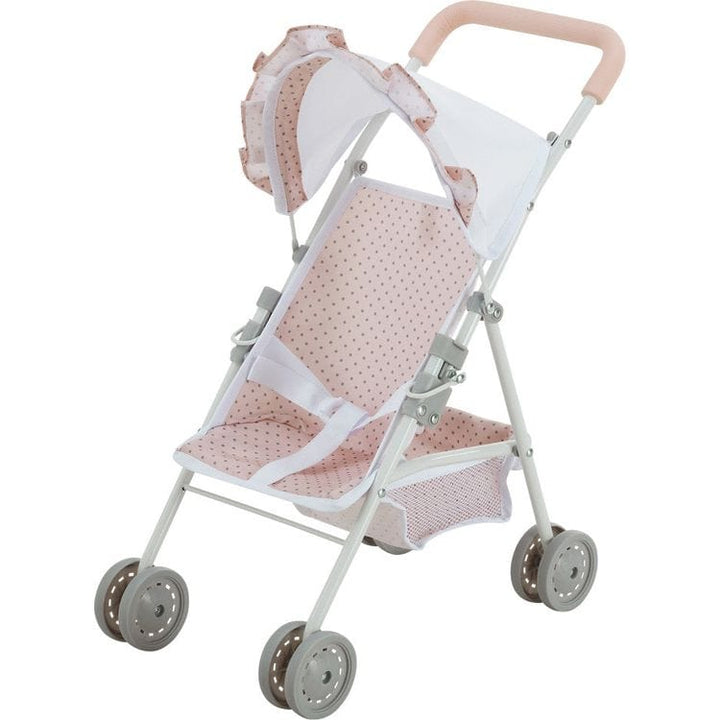 Olivia's Little World Nursery Set includes a collapsible high chair, a folding umbrella stroller with canopy, and a pack-and-play style crib, all ideally sized for 15" dolls and stuffed animals. Available in two color options – Blue & White or Pink & Gray – the high chair lets your little one pretend to feed th