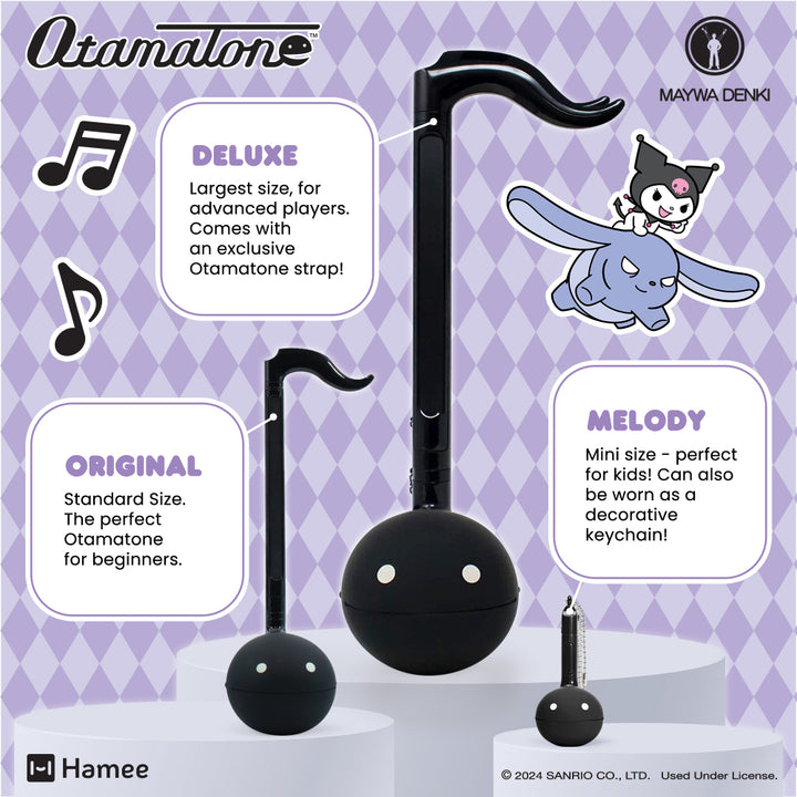 One of Japan’s Best-Selling Musical toys! This supercute new Hello Kitty® and Friends Otamatone features an officially licensed, exclusive Kuromiâ„¢ design! FUN & EASY TO PLAY ♡ Touch or slide your fingers along the stem to vary the pitch and squeeze the cheeks for vibrato. Play in a low, medium, or high pitch – get