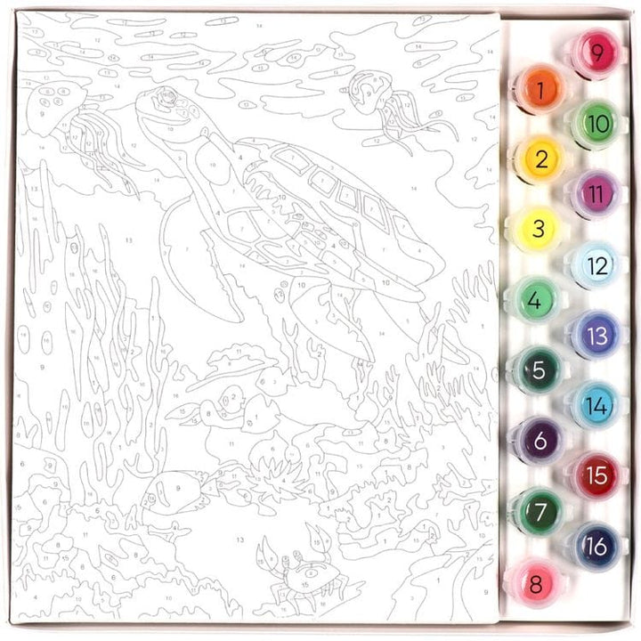 Create a stunning painting depicting a majestic sea turtle swimming among the coral reefs, and read facts about this endangered animal and its habitat with this paint kit for kids. Paint By Numbers Amazing Ocean is designed for kids 8+. Beautiful ocean-themed artwork has enough detail to yield an impressive result. De