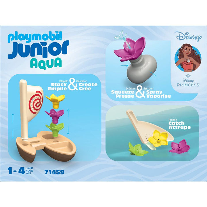 Land Ahoy! The enchanting boat with a cheerful crew on board, inspired by Disney's Moana, sets sail. Moana and the rooster embark on an exciting South Seas adventure. But what floats there in the water? Together with Moana, your child will have fun exploring the water. The colorful flowers can be collected and stacked