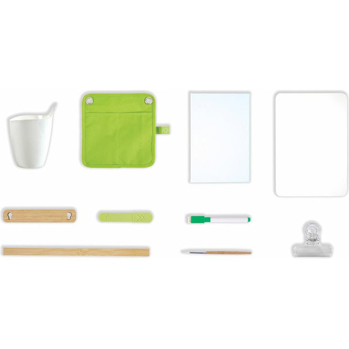 A portable and eco-friendly art companion for young artists. Crafted from sustainable bamboo, it's perfect for creative adventures on the go. PORTABLE ACCESSORIES: This lightweight easel includes the easy-to-assemble bamboo body, three easel leg connectors, one canvas, one wooden drawing board, one foldable brush case,
