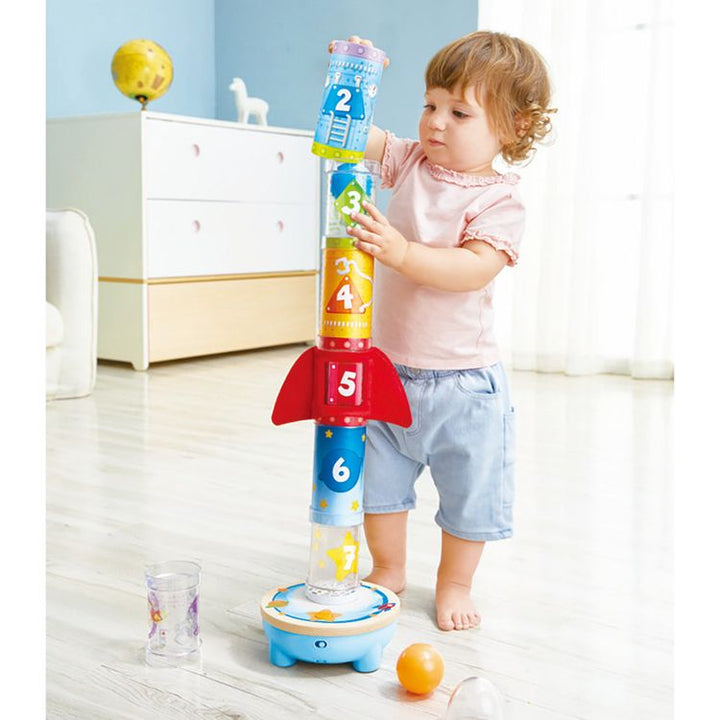 Let your little one see a ball float in the air for the first time! All they have to do is place the ball in the base, stack the tubes, turn on the fan, and watch the ball soar up the tubes to the top. Perfect for different ages and heights, this fun and engaging playset for kids can be stacked up to over 35’’. Toddler