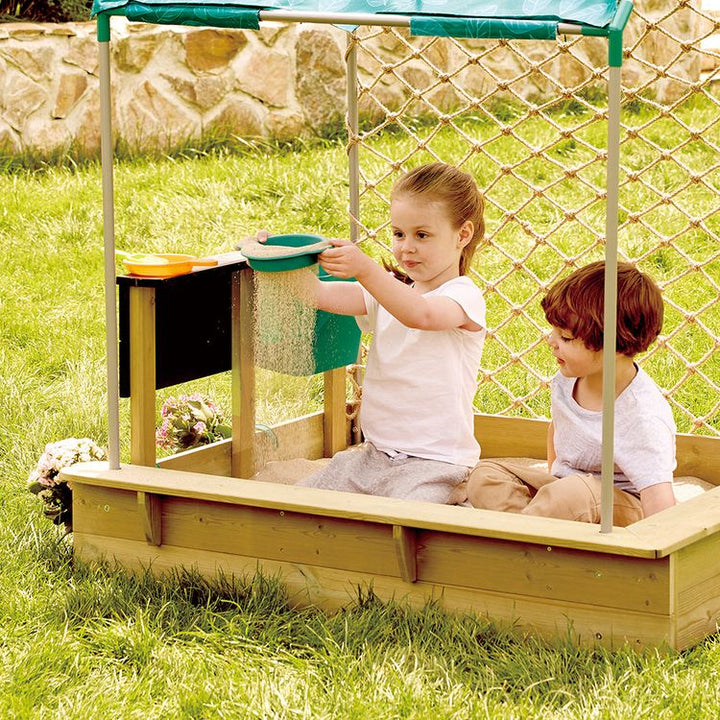 Turn your garden into a creative adventure playground with our all-in-one outdoor set! This versatile set combines a sandbox, kitchen, planter, easel, and a cozy, removable roof. Whether digging for treasure, gardening, or painting – children can let their imaginations run wild here. The ideal addition to any outdoor s