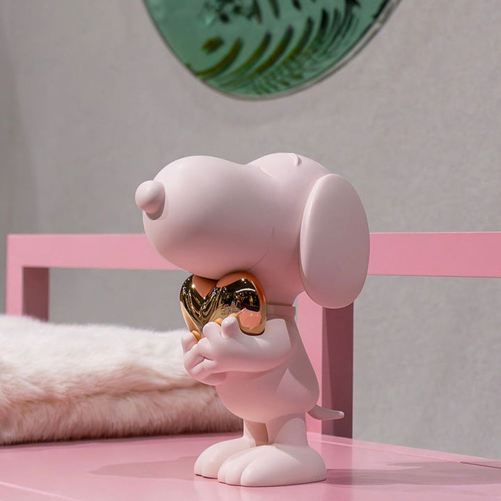 Snoopy 11″ Figurine With Heart – Pastel Pink & Rose Gold