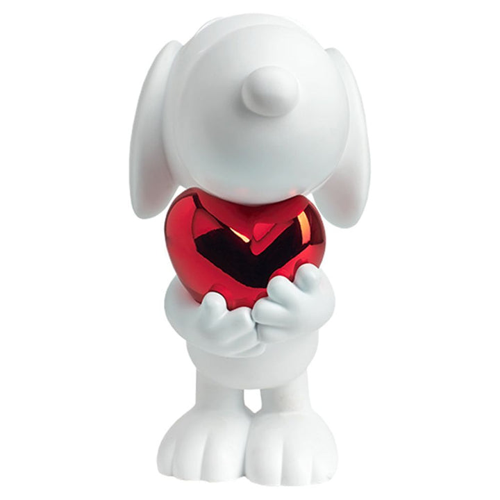 Add a touch of tenderness to your decor with this adorable figurine of Snoopy, the iconic dreaming beagle. This resin figurine is a tribute to love and friendship, showcasing the chromed heart that Snoopy holds close to him. This creation perfectly captures the joyful and playful spirit of Snoopy while adding a romanti