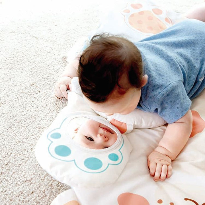 Explore sensory delights with our activity gym. It boasts a soft mirror and customizable cards for budding learners. Additionally, cherish the tummy bear pillow, interactive hanging toys, and crinkly features for comprehensive playtime happiness. Item Weight: 4.85 lbs Product Dimensions (L x W x H): 28.7 x 20.8 x 34.25