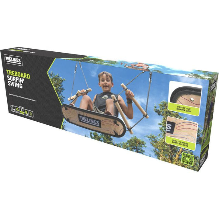 With the Surfin’ Swing, kids can carve through the air, feeling the rush of freedom as they soar higher and higher! Kids can twist, turn, and perform tricks mid-flight, all while suspended from sturdy ropes. Easily set up on Trelines’ Ninja Adventure, Swingset lines, or to a sturdy branch. Weight limit: 250 lbs Ages 5+
