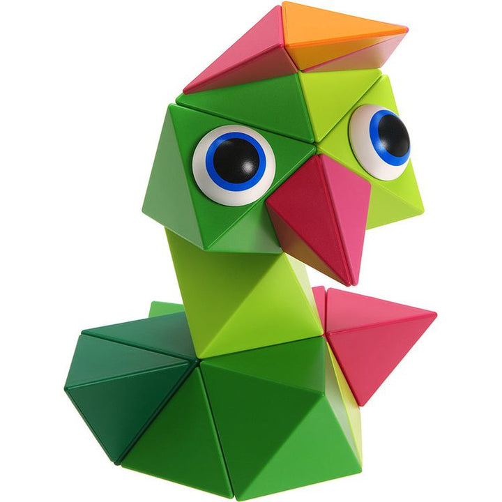 Bright Jungle colors abound in this 36-Piece Set includes: 6 octahedrons, 12 tetrahedrons, 12 half-tetrahedrons, 6 eyes (in total 36 pieces) + Leaflet + Limited Edition "Inspiration Book" With a large set you can either build one large construction or several smaller ones and share the process of creating with your fri